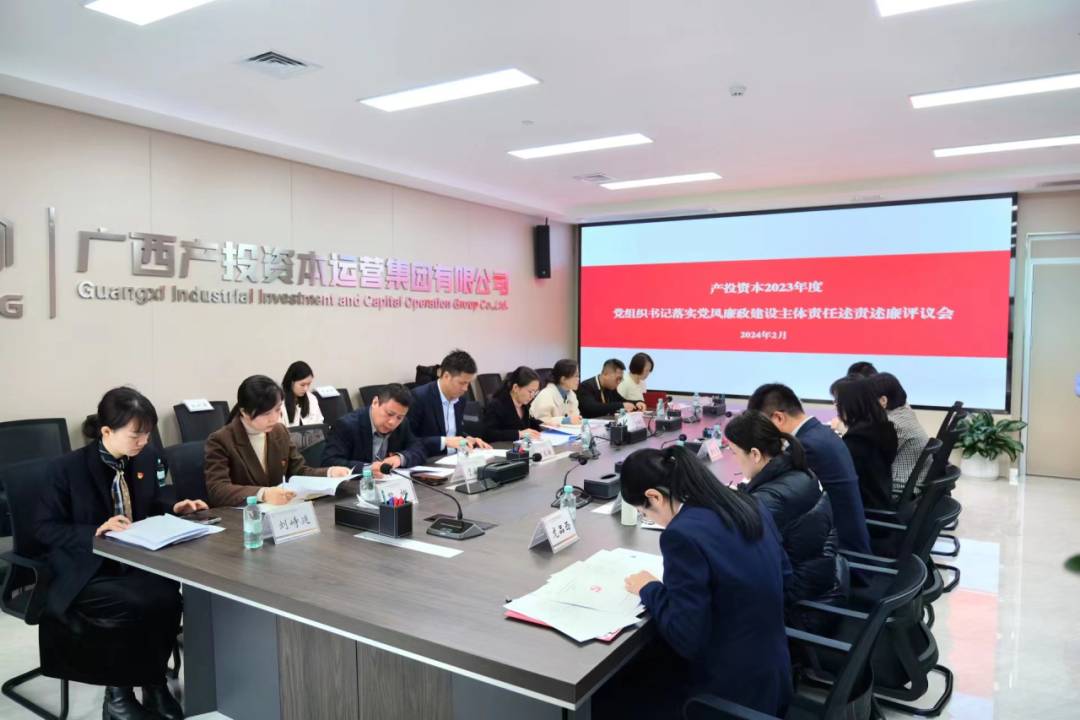 2月5日,产投资本党委召开2023年度党组织书记落实党风廉政建设主体责任述责述廉评议会,深入学习贯彻习近平总书记关于全面从严治党的重要论述,坚定不移推进全面从严治党向基层延伸。产投资本党委书记、董事长赵妮妮主持会议并讲话,产投资本在家党员领导班子成员参加会议。宏桂集团纪检监察室相关人员到会指导。